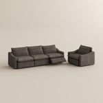 48" & 121" Contemporary Power Reclining Loveseat Set in Beige Fabric, with Adjustable Headrest, USB Ports, and 145° Recline, Fabric, Dark Mocha