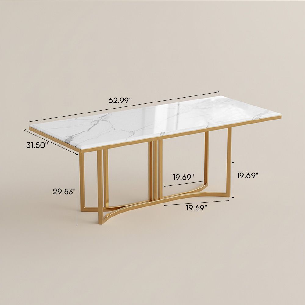 63"Bura Modern Faux Marble Dining Table For 4, White Rectangular Tabletop Gold Stainless Legs