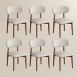 Mid-Century Modern Wood Dining Chairs Set of 6, Round Back Dining Chairs, Breakfast Table Chairs, Chairs for Wooden Table, Beige & Light Walnut