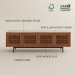 70.87"Mid-Century Modern Matte Sintered Stone Tabletop TV Stand,Slatted Door TV Console, Walnut Color Media Console