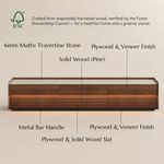 94.49" Mid-Century Matte Travertine Stone Tabletop TV Stand, Modern Entertainment Center, Walnut Color Cabinet with Adjustable Light, Fully-Assembled, Perfect for 85-inch TVs