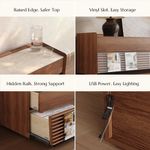 118.11" Mid-Century Matte Travertine Stone Tabletop TV Stand, Modern Entertainment Center, Walnut Color Cabinet with Adjustable Light, Perfect for 100-inch TVs