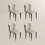 Modern Upholstered Dining Chairs Set of 4, Wingback Leather Side Chairs, Brown & Beige