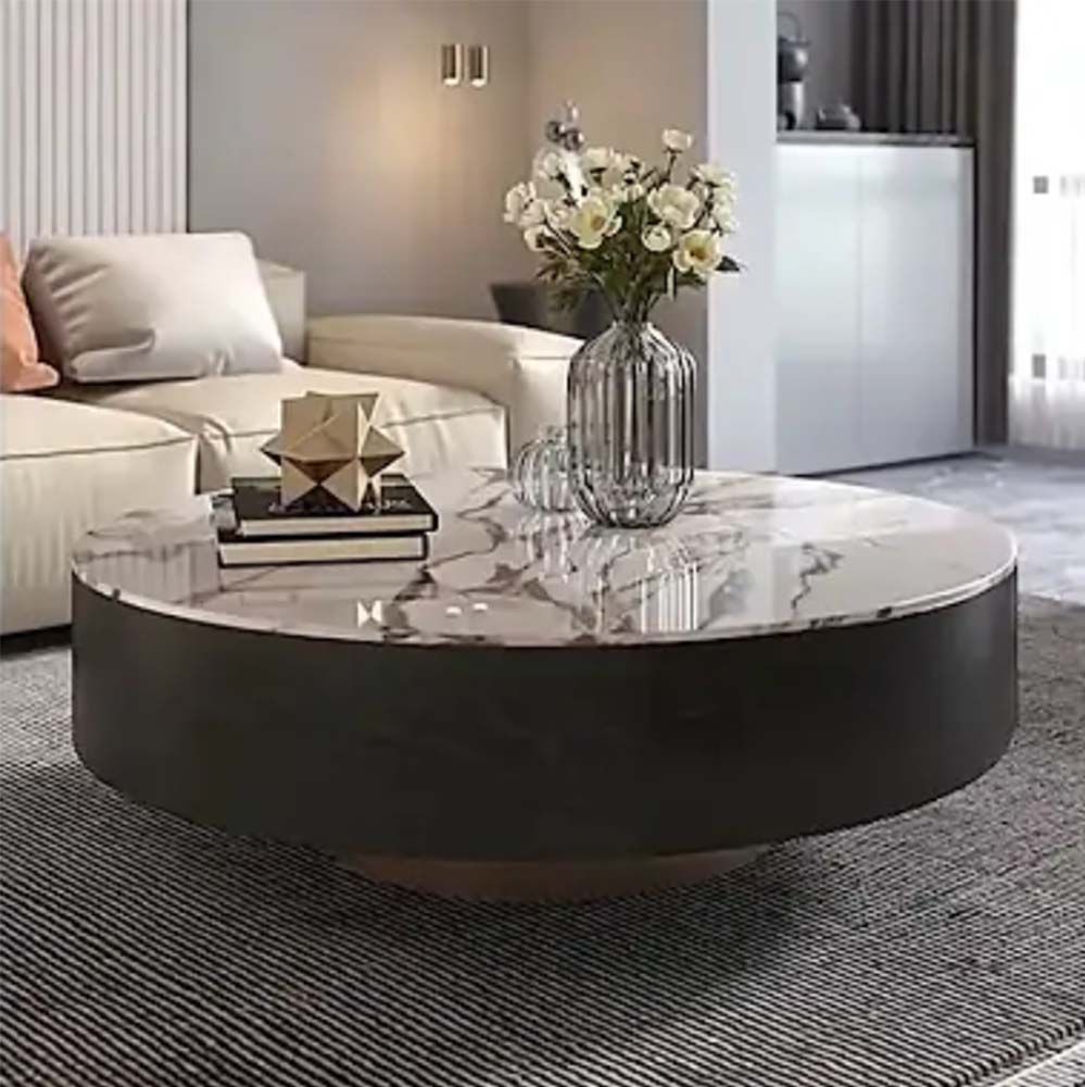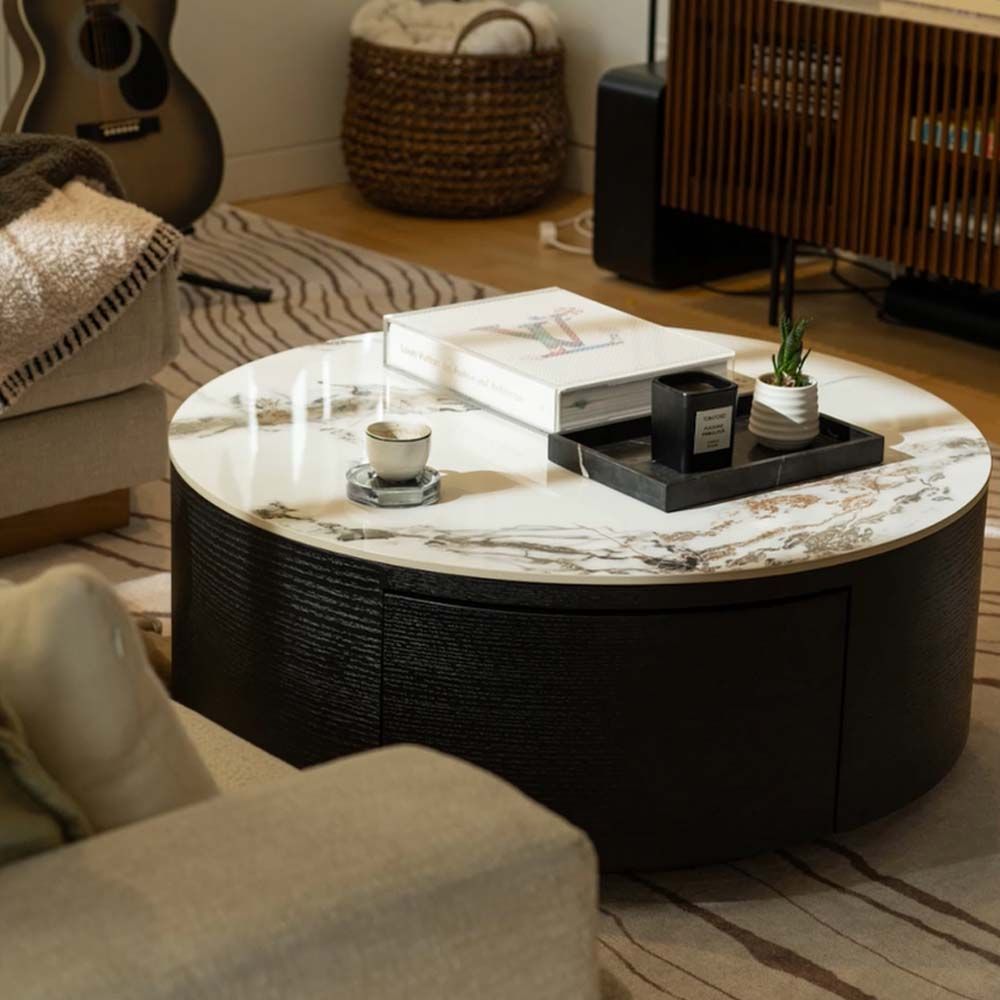 35" Round Drum Sintered Stone Coffee Table with Storage