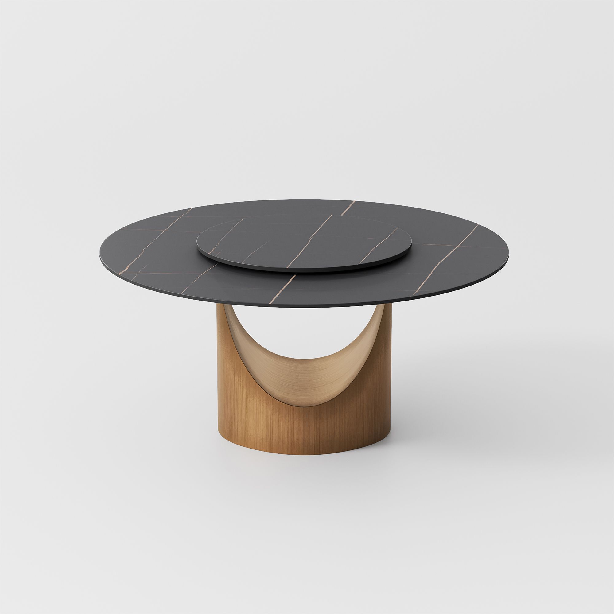 BEST SELLER Hobart Modern Minimalist Dining Table for 4/6, Round Sintered Stone Tabletop, Bronze Carbon Steel Leg