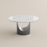Round White & Gray Glossy Sintered Stone Dining Tables