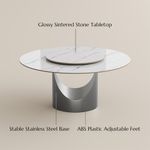 59" Hobart Modern Round Dining Table for 6 with Lazy Susan, White Glossy Sintered Stone Table, Gray Metal Pedestal