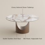 59" Hobart Modern Round Dining Table for 6, Pandora Glossy Sintered Stone Table, Bronze Carbon Steel Pedestal