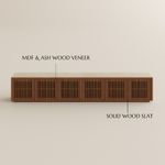 95"Modern Minimalist Wood TV Stand with Matte Sintered Stone Tabletop, Slatted Entertainment Center, Wood TV Console, Perfect for 85-inch TVs