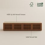 71" Modern Minimalist Wood TV Stand with Matte Sintered Stone Tabletop, Slatted Entertainment Center, Wood TV Console,Fully-Assembled, Perfect for 65-inch TVs