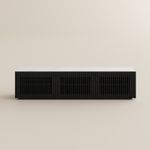71" Modern Minimalist Wood TV Stand with Glossy Sintered Stone Tabletop, Slatted Entertainment Center, Black TV Console, Fully-Assembled, Perfect for 65-inch TVs