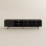 Mid-Century Modern TV Stand, Louvered Wood Entertainment Center with Slatted Doors, Open Storage, 94.49"