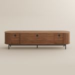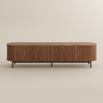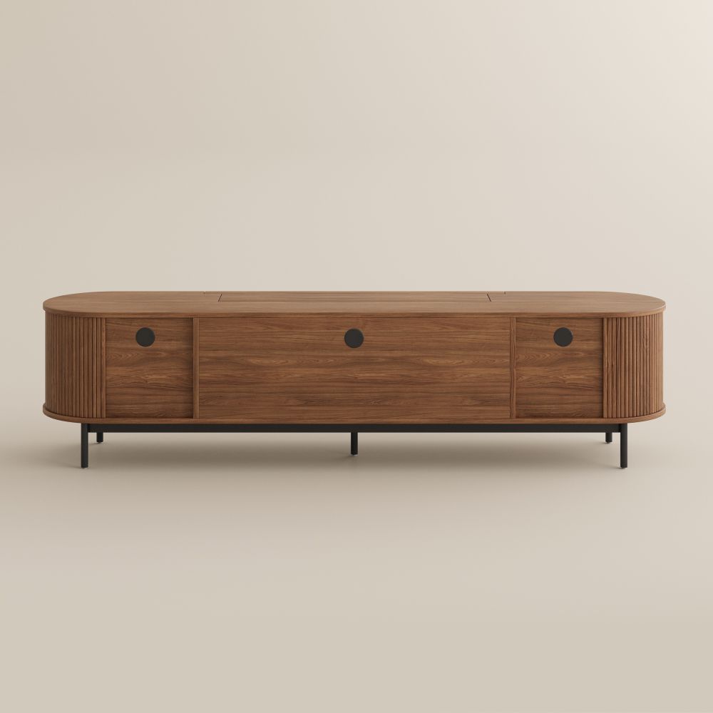 Povison's classic tambour door design offers an elegant, vintage look that enhances your space's aesthetic. Its ample storage and built-in cable management ensure a tidy, organized setup, while the quiet, seamless sliding door provides easy access to your media components.