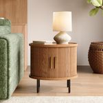 23.6''W Mid-Century Tambour Door Side Table with Storage