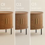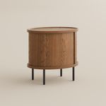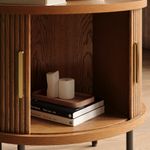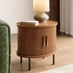 23.6''W Mid-Century Tambour Door Side Table with Storage,Wooden Night Stand,Oval Side End Table,Accent Table,Harper Style Small End Tables For Living Room