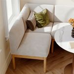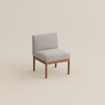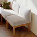 Mid-Century Modern Solid Wood Single Banquette, Cotton Linen Armless Chair, Beige & Light Walnut