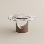 51.18" Hobart Modern Round Dining Table for 4 with Lazy Susan, Pandora Glossy Sintered Stone Table, Bronze Carbon Steel Pedestal