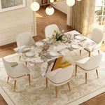 I am very impressed with the quality, comfort, and overall look of these chairs. They feel very sturdy and heavy, which makes them seem high-end and well made. The design is beautiful and they look very upscale in my dining room. The only thing I would note is the color description. The listing states the chairs are beige and light walnut, but in my opinion the color looks more cream than beige. They’re still lovely, but just something to be aware of if you’re trying to match a specific color. Overall, I’m very happy with the purchase and the quality & look exceeded my expectations.